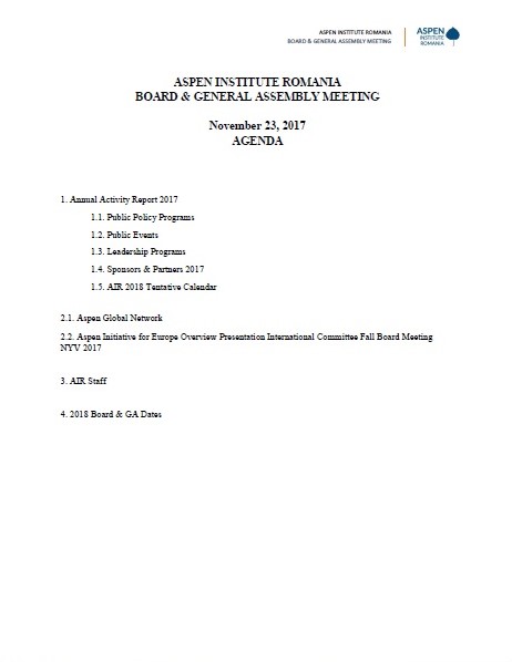 Aspen Institute Romania Board & General Assembly Meeting – November 23, 2017